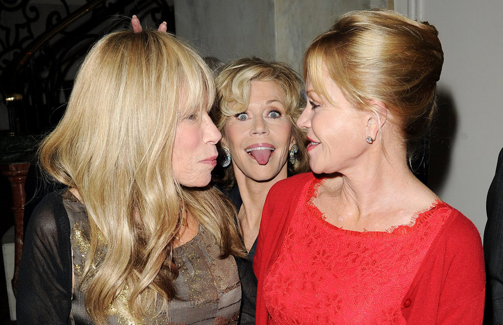 10. Melanie Griffith y Carly Simon posaban para una bonita fotografía de veterana actriz y cantante. Pero no contaban con la súbita aparición de Jane Fonda.
