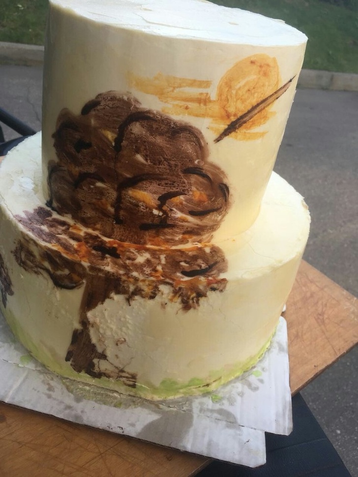 Cuando ordenas un pastel de bodas lujoso, decorado con un “Árbol de la vida”, y te traen esto