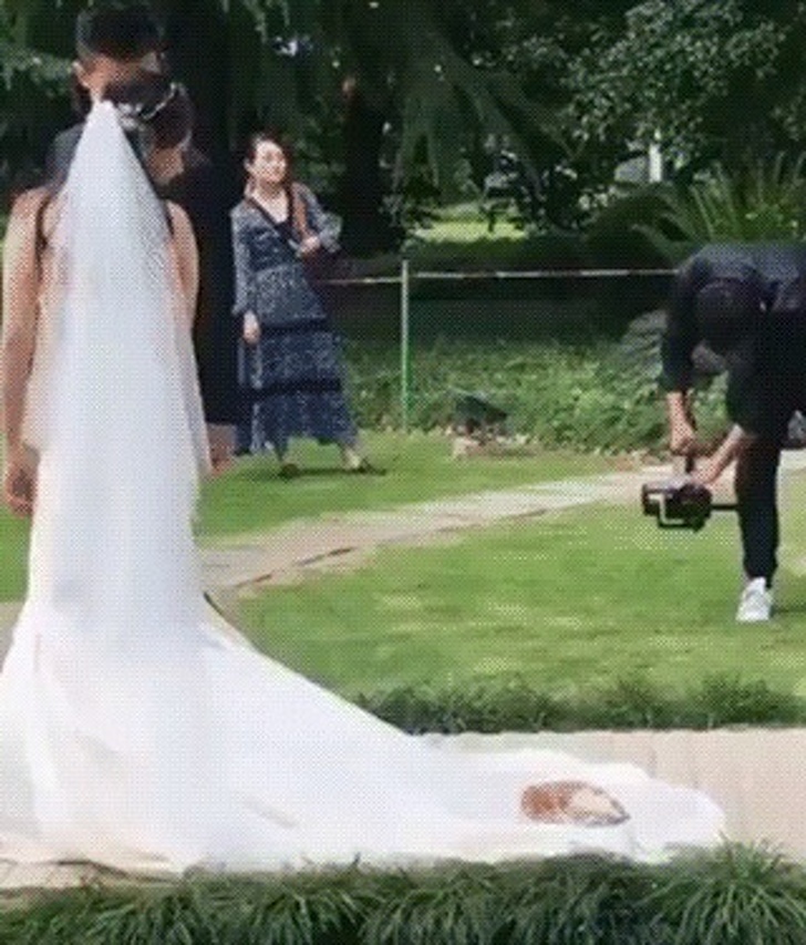 Al escoger un vestido con una larga cola, debes estar preparada para el hecho de que a alguien le puede gustar demasiado