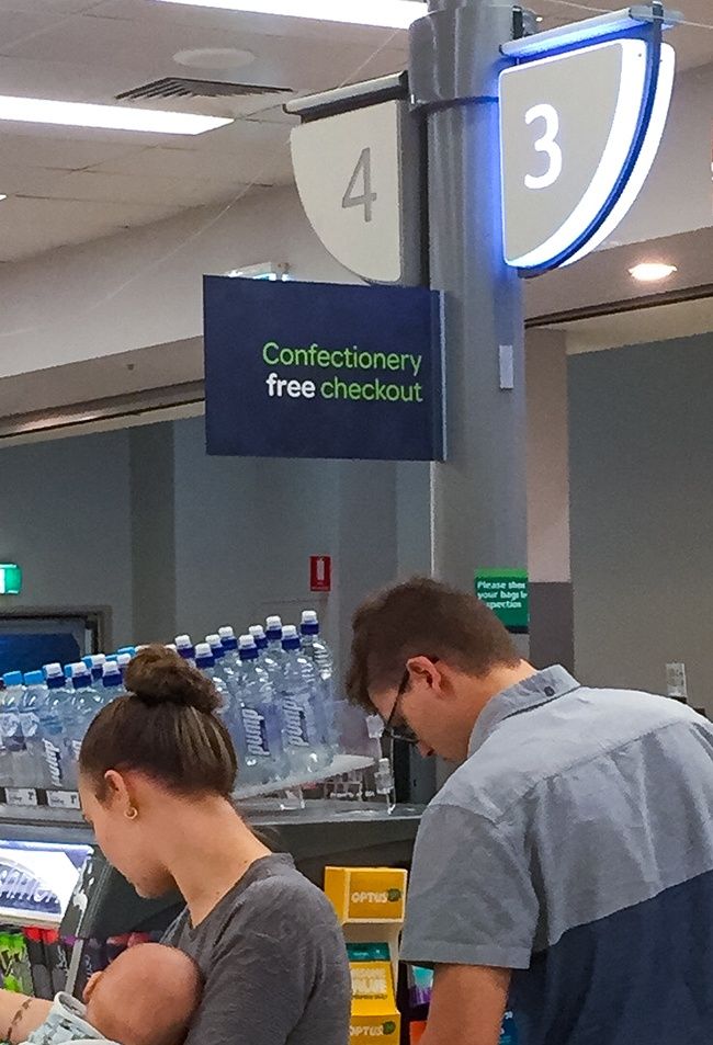 2 – Um caixa de supermercado sem doces e outras guloseimas em volta
