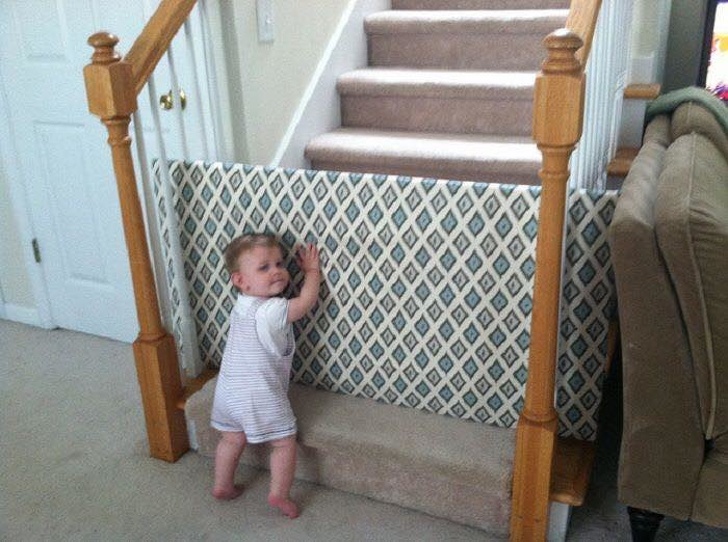 8. Using a net to prevent your kid from getting through the wide railing