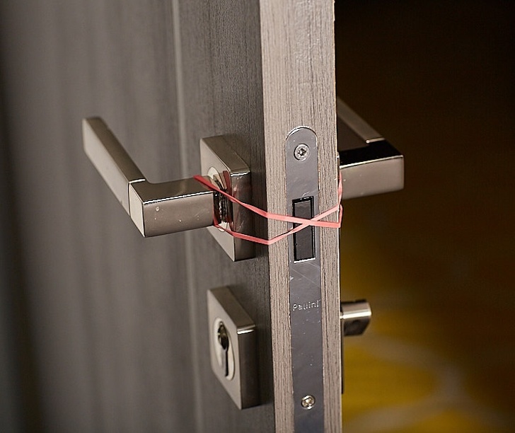17. A simple rubber band will keep your kid from locking the door.