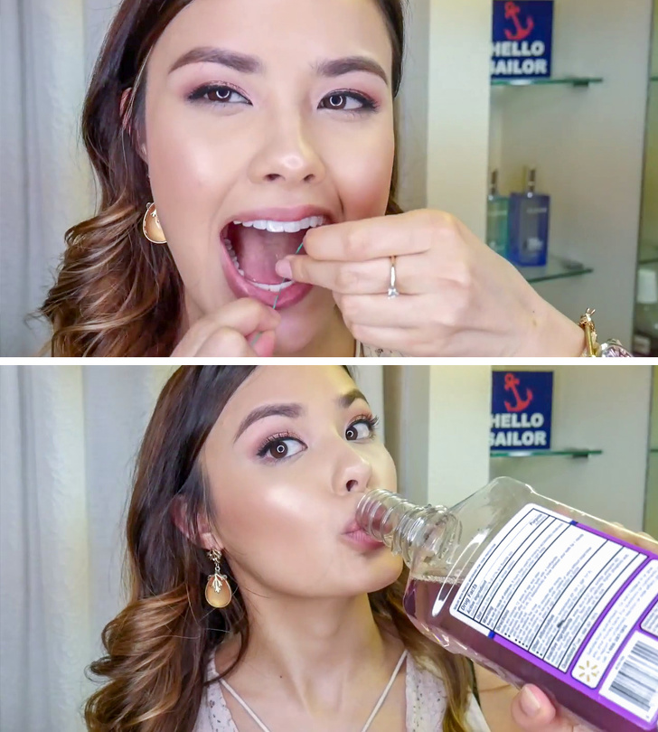 En la infancia nos enseñaron lo siguiente: los dientes deben cepillarse dos veces al día. Pero para mantener la salud de los dientes y una sonrisa blanca como la nieve, esto no será suficiente. Es como lavar los platos solo por la mañana y antes de acostarse. Utiliza hilo dental y el enjuague bucal después de cada comida. Esto reducirá significativamente la placa, especialmente si te gusta el té y el café y también te ayudará en el futuro a acudir con menor frecuencia al dentista.