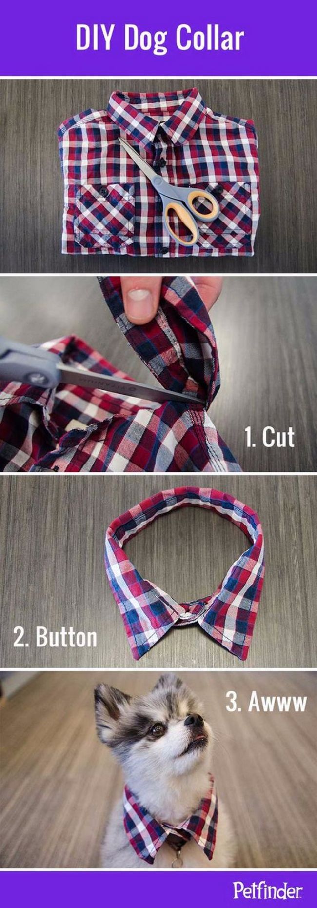 12 – Faça um colar para cães usando uma gola de camisa que você não usa mais