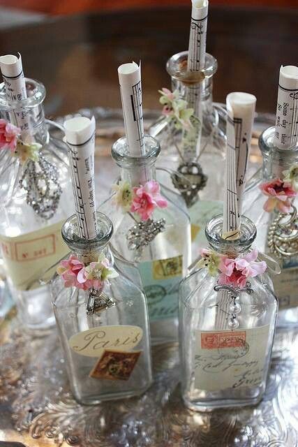 Perfume bottles can also be turned into super cute placeholders. Just label the bottle with your guest’s name and table number. You can also have a note or placard sticking out of the bottle.