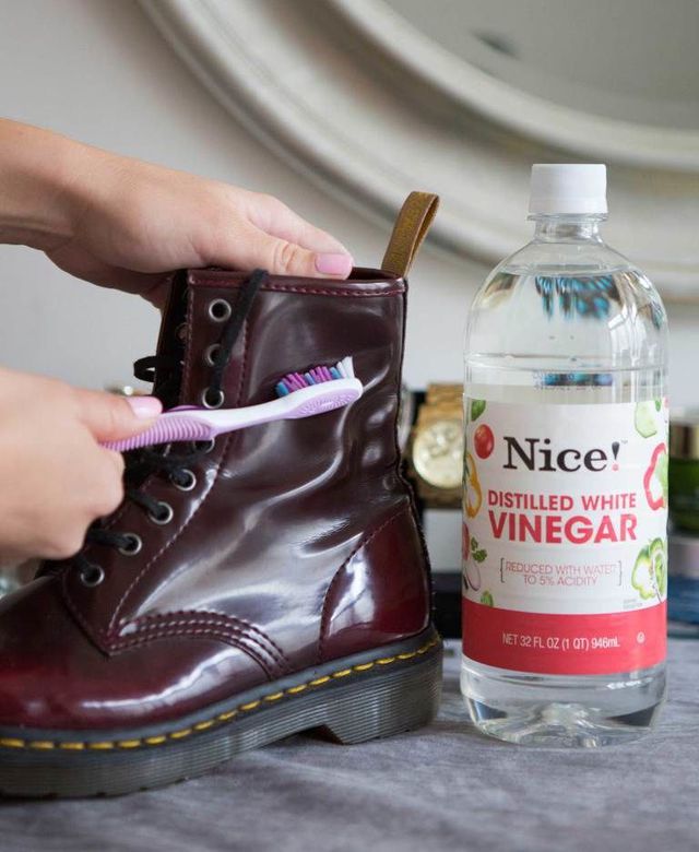 Rain, snow, and salt can do a number on your leather boots. Get rid of those water stains by dipping a toothbrush in white vinegar. Rub the stains with this solution to remove them.