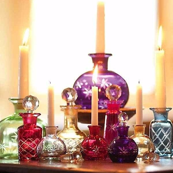 Pour some scented oil in your perfume bottles and add a wick. You can also add elements inside to make it look nice. This will make your home smell great.