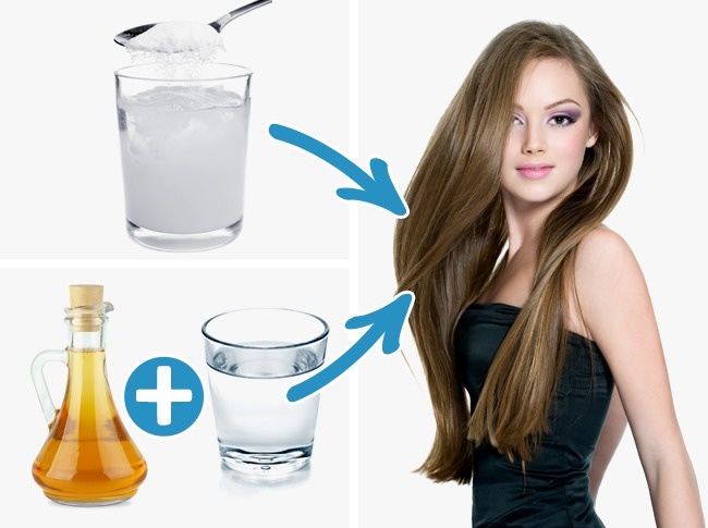 Misture 9 colheres de água com 3 de bicarbonato de sódio aplique o resultado nos cabelos, incluindo a raiz. Massageie o couro cabeludo. Depois, aplique uma mistura de água e vinagre de maçã. Massageie e enxágue. Esse procedimento deixa o cabelo mais brilhante e saudável.