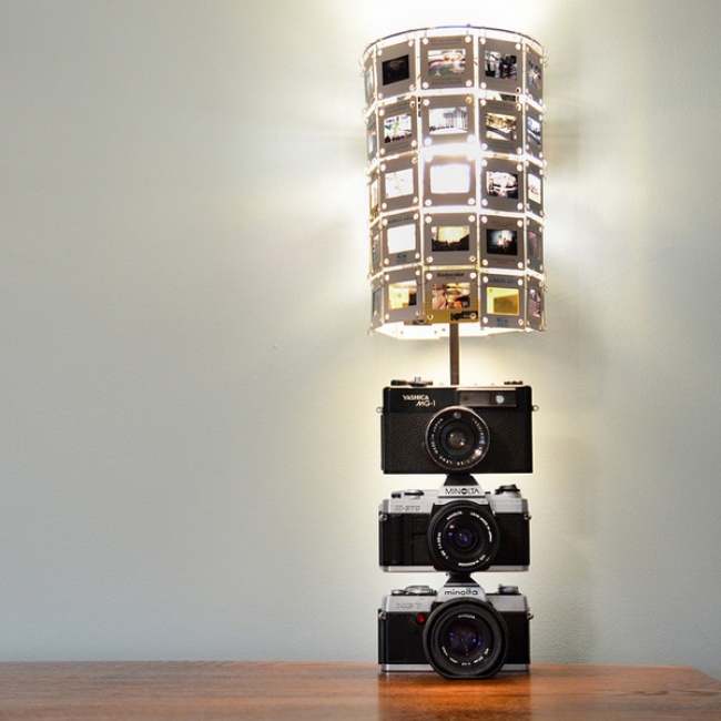 #7. Luminária de câmeras fotográficas e filmes antigos