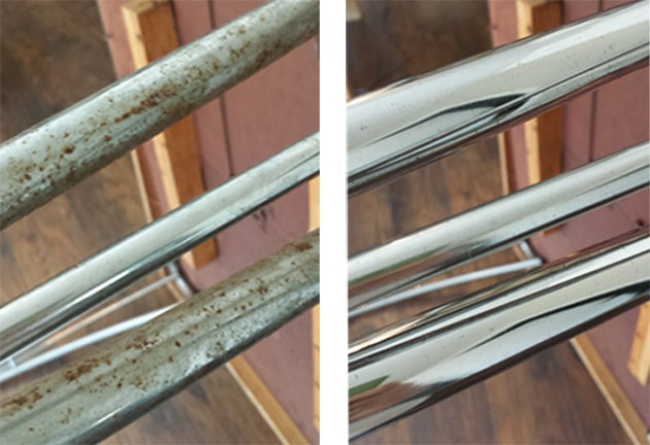 Dobre um pedaço de papel alumínio, molhe-o e passe-o com força pela superfície cromada oxidada.