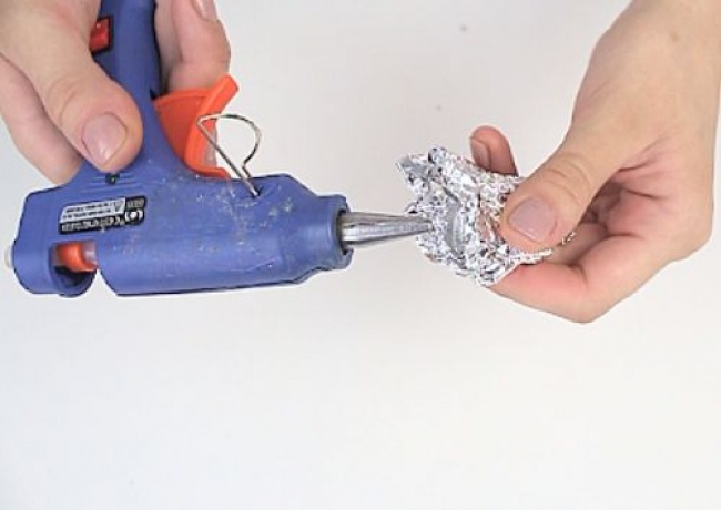 O papel alumínio é útil para limpar sua pistola de cola quente.