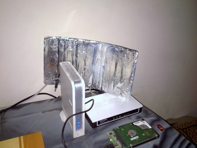 Papel alumínio é capaz de aumentar a intensidade do sinal de Wi-Fi. Dobre-o em várias camadas e posicione-o como se fosse uma tela atrás da antena do roteador.