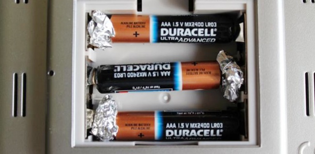 Se suas pilhas tiverem gastas e você não tiver outras para substituir, use um pedaço de papel alumínio.