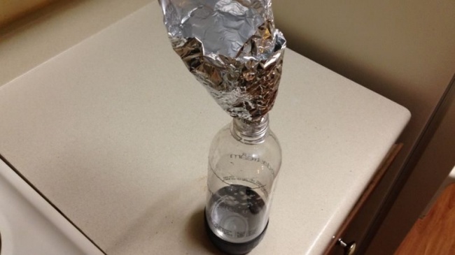 Caso precise passar urgentemente um líquido para outro recipiente, faça um funil com papel alumínio.