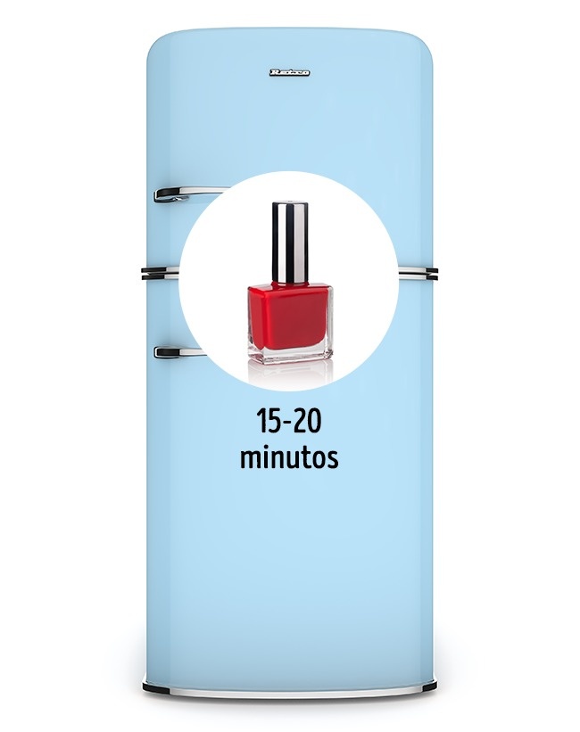 Para que o esmalte seja aplicado com uma camada mais fina, não se encha de bolinhas e seque mais rápido, coloque-o durante 15-20 minutos na geladeira.