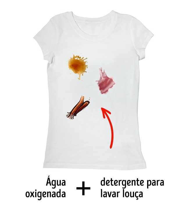 Para obter um tira manchas universal, misture em proporções iguais o detergente para lavar louça e a água oxigenada. Aplique a mistura sobre a mancha e vai ver como começará a desaparecer.