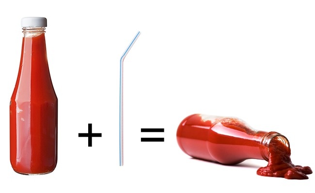 Para que o ketchup saia da garrafa mais rápido, mergulhe um canudo nela.