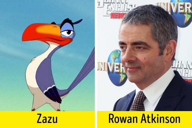 El loro Zazu fue obsequiado con la voz de Rowan Atkinson, al cual conocemos gracias a su papel de Mr. Bean.