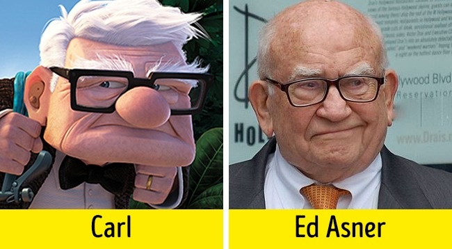 Ed Asner se encargó del doblaje del personaje de Carl de la película “Up”. Parece que los animadores no solo se inspiraron en el físico del actor, sino también pasaron sus gestos y rasgos personales al personaje.