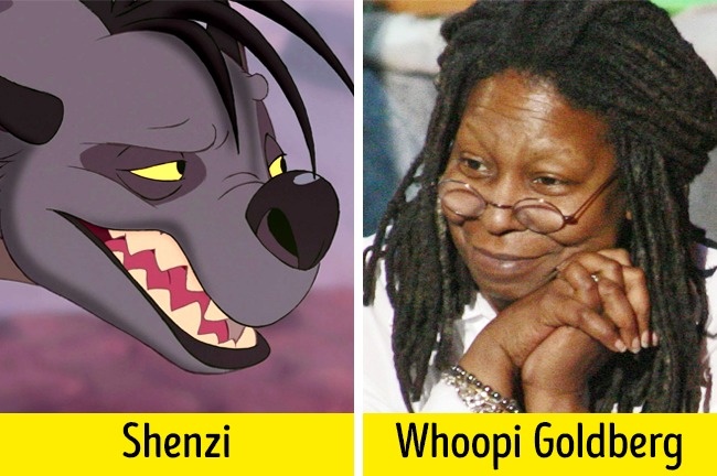 Y la hiena Shenzi tiene la voz y los rasgos faciales de la actriz Whoopi Goldberg.