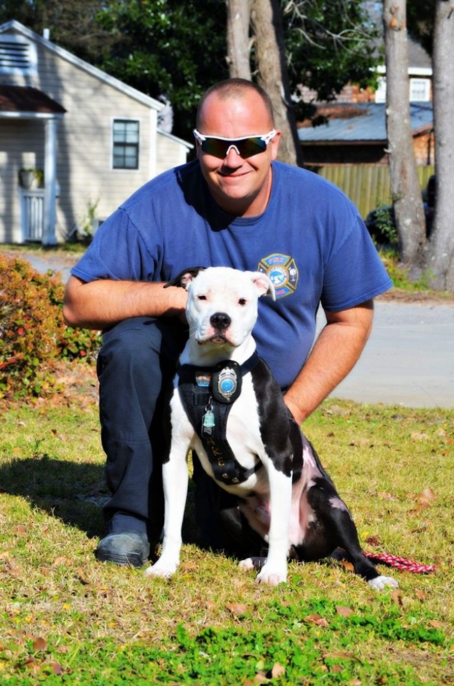 Jake es un cachorro que quedó atrapado en un granero en llamas y sufrió quemaduras en un 75 por ciento de su cuerpo. Aunque fue rescatado del incendio, sus dueños lo dejaron en la clínica veterinaria. William Lindler es el bombero que salvó la vida de este cachorrito, no lo pudo dejar y lo llevó consigo. Así Jake consiguió su propia insignia de bombero y a un dueño que lo quiere.