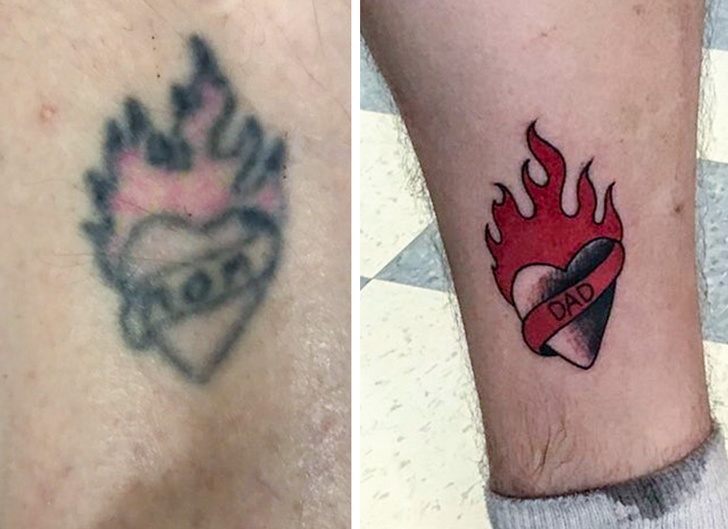 14. Tatuaje de un padre difunto y otro de su hijo, quien se lo hizo en honor a él