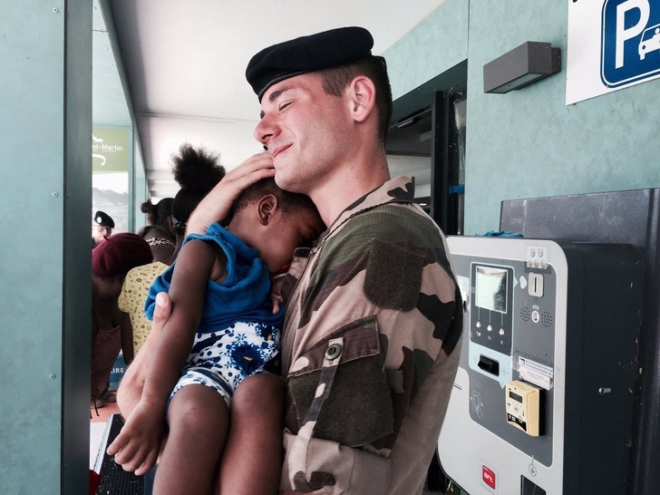 10. Un soldado tranquiliza a una pequeña durante una operación de rescate
