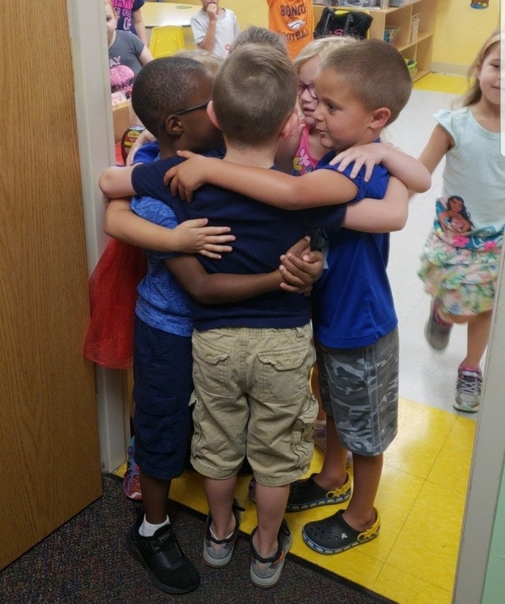 15. Los pequeños del kínder se despiden entre ellos antes de ir a la escuela