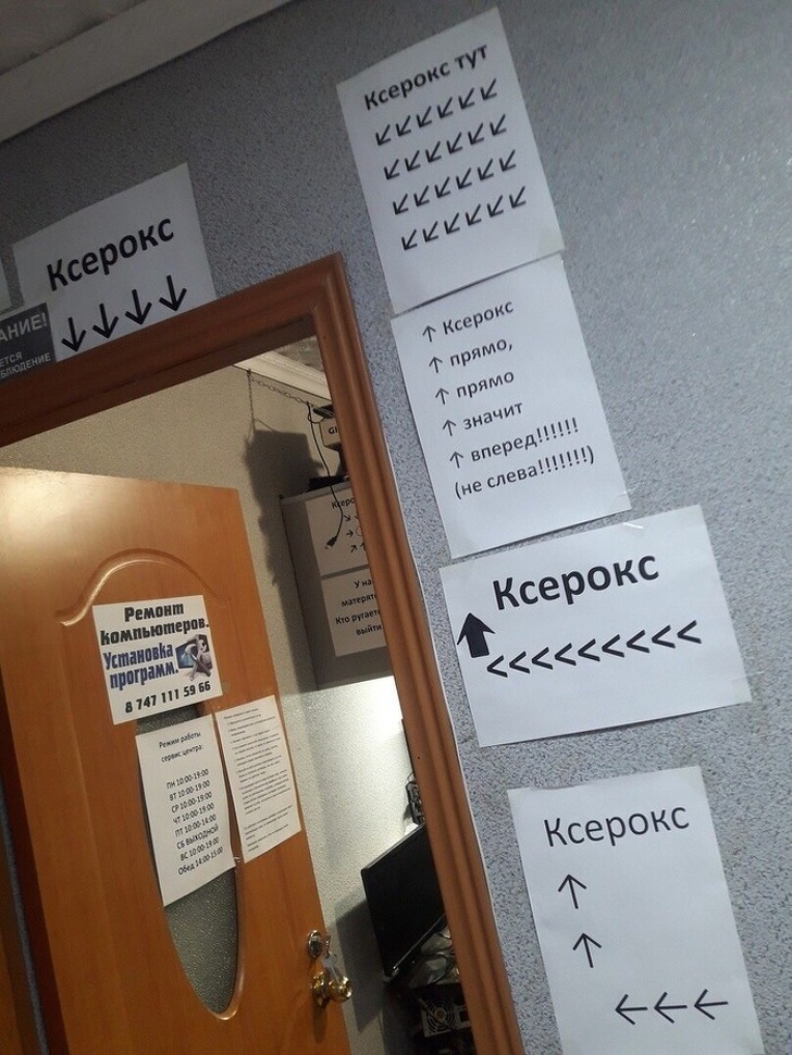 “Fotocopiadora. La fotocopiadora está aquí. Derecho, ¡derecho significa derecho! ¡No a la izquierda! Fotocopiadora. Fotocopiadora”.