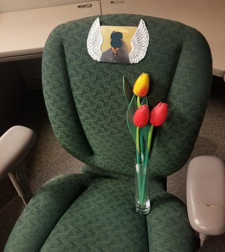 Alguien hizo un monumento conmemorativo a un colega que se mudó a otra oficina