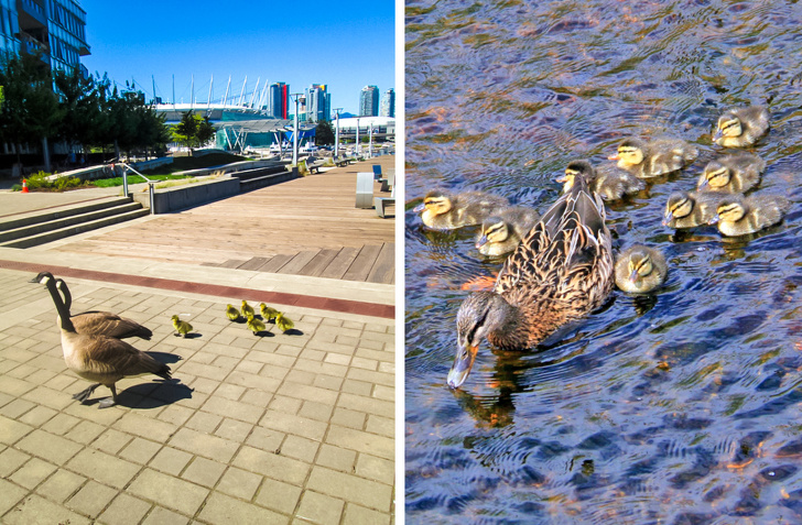 Os patos frequentemente constroem seus ninhos longe da água e, para chegar ao reservatório, eles precisam atravessar longas distâncias. Se o patinho se perder no caminho, ele simplesmente estará condenado a morrer. Portanto, este tipo de ave é forçado a ir em fila única seguindo o passo daqueles que vão à frente: só isso pode garantir que todos os jovens cheguem ao local em segurança.