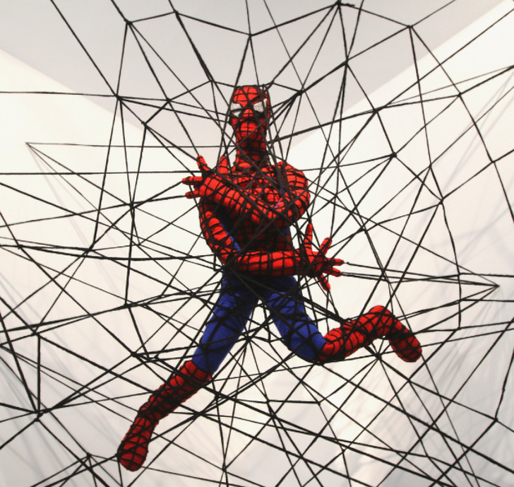A teia de aranha possui dois tipos de fios: radial liso e concêntrico pegajoso. A aranha sempre se move apenas ao longo de seus fios radiais e, portanto, não gruda.