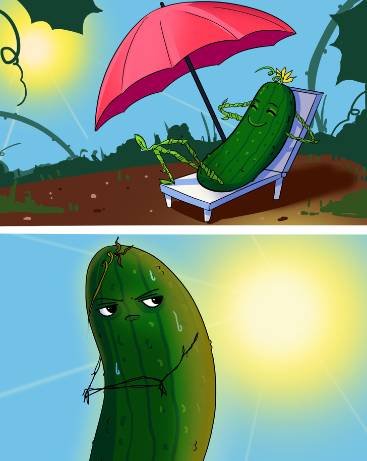 Os “ancestrais” dos pepinos que comemos hoje cresceram à sombra das florestas tropicais e tinham um sabor com um toque adocicado. Nas latitudes do norte, o pepino, sob um sol forte, começa a “protestar” e produz a substância cucurbitacina, que o torna amargo, começando pela sua casca. Em outras palavras, quanto mais sol, mais amargo será o sabor do pepino.