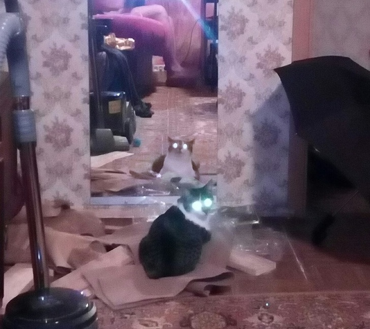 Em muitos animais, incluindo gatos, os olhos podem captar e aproveitar ao máximo a radiação de luz mais fraca, que se reflete na parte de trás dos globos oculares. Do lado de fora, pode parecer um brilho diabólico, mas na realidade só permite que os animais enxerguem melhor no escuro.