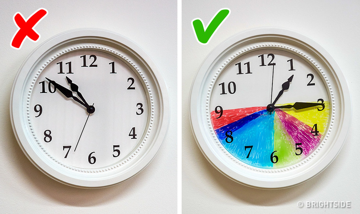 A clock and colorful markers can teach your kids time management skills. Just color the parts of the clock in different colors that will indicate different tasks: 5-6 p.m. for homework; 6-7 p.m. for dinner, etc. Explain this technique to a child. It’ll make it much easier for them to stick to a schedule.