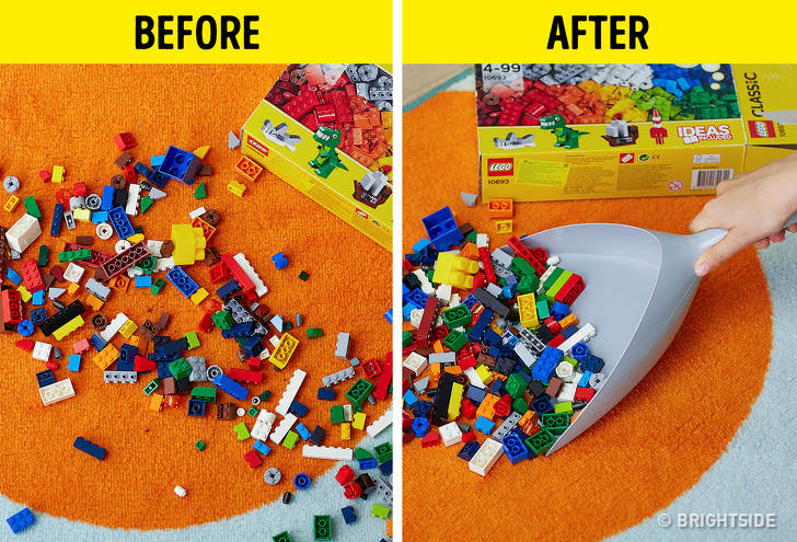 Lego pieces and other small toys can cause a lot of trouble: parents constantly step on them and it’s quite energy-consuming to clean them up all the time. Just use a dust pan to get rid of the mess quickly. Why haven’t we thought of this before?