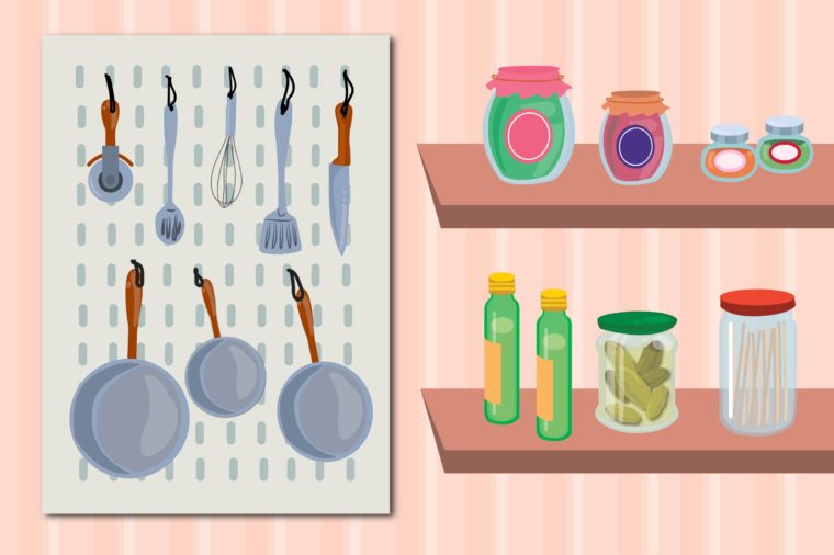 Heimköche, die sich beeilen müssen, würden ein Pantry-Pegboard zu schätzen wissen. Sie können die Haken verwenden, um alles von schweren Töpfen und Pfannen bis hin zu beliebigen Utensilien und Gadgets aufzuhängen. Plötzlich wurde Ihre Mahlzeitvorbereitungssitzung viel schneller (und organisierter!).