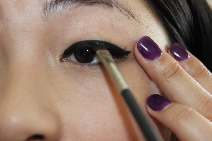 Puedes aplazar la compra de un delineador nuevo si tienes una máscara negra o de colores. Basta con introducir un pincel biselado para productos cremosos y aplicarlo como de costumbre: la máscara desempeñará perfectamente el papel de un delineador resistente y saturado.