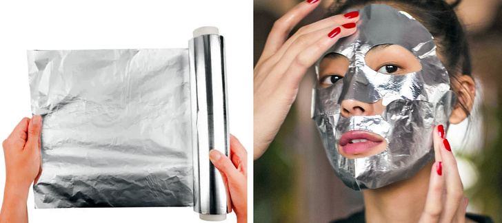 Es posible aumentar la efectividad de cualquier máscara de crema con el papel de aluminio habitual, que se sostiene un poco en el refrigerador. Además, la máscara de aluminio también se utiliza como un producto cosmético independiente para eliminar la hinchazón matutina: se aplica por encima de la tónica o el suero