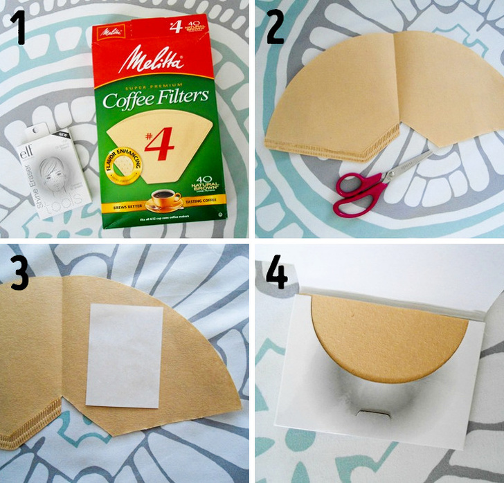 Los filtros para café se venden en paquetes enormes y no cuestan nada en comparación con los pequeños paquetes de toallitas. Están hechos de papel suave y delicado sin impregnación química y saborizantes, por lo que son perfectos para eliminar excesos de grasa de la piel.