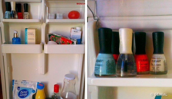 Las burbujas de aire en las uñas pintadas pueden afectar el estado de ánimo: se ven muy descuidadas. Es cierto que esto no es una razón para tirar a la basura tu laca favorita e ir a comprar una nueva. Una manera segura de deshacerse de las burbujas es colocar el frasco en el refrigerador unos15 minutos antes de pintar las uñas. ¡Realmente funciona a la perfección!