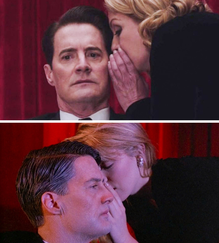 Kyle MacLachlan (Dale Cooper) y Sheryl Lee (Laura Palmer) en la serie Twin Peaks en 1990 y 2017 respectivamente
