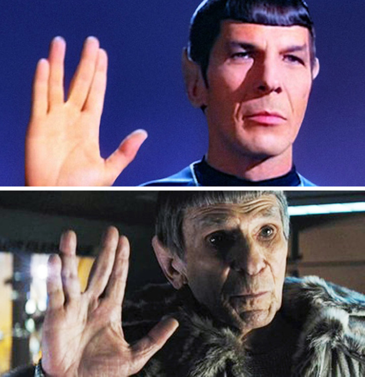 Leonard Nimoy (Spock) en la serie Star Trek (1966) y en la película Star Trek: en la oscuridad (2013)