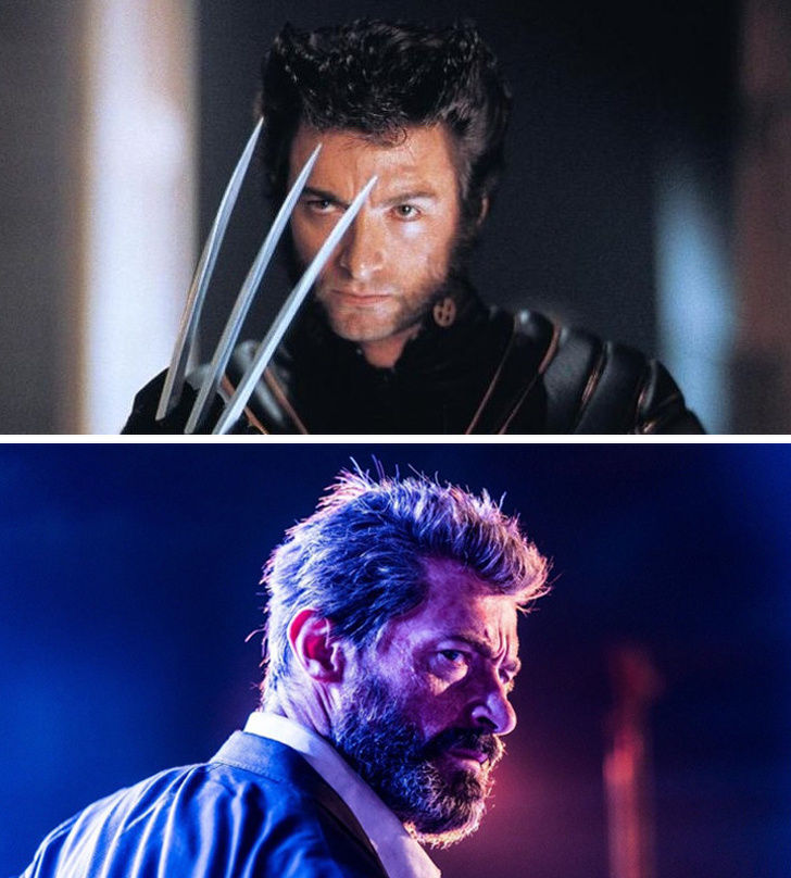 Hugh Jackman (Wolverine/Logan) en las películas de X-Men(2000) y Logan (2017)