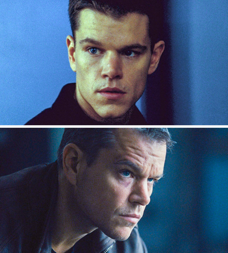 Matt Damon (Jason Bourne) en la película Identidad desconocida (2002) y Jason Bourne (2016)
