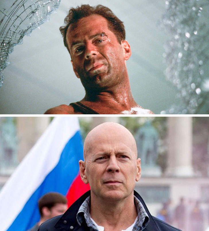 Bruce Willis (John McClane) en la película Duro de matar(1988) y Duro de matar: Un buen día para morir (2013)