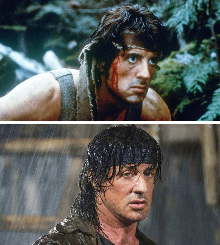 Sylvester Stallone (John Rambo) en la película Rambo: primera sangre (1982) y Rambo: el regreso (2008)