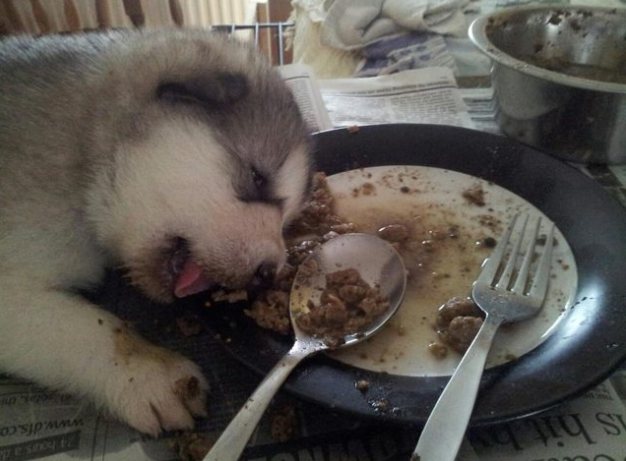 8. Whatever this baby is, he sure likes dinner time.