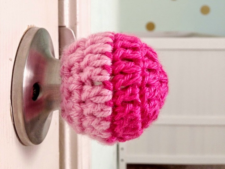 Si necesitas limitar el acceso del niño a una habitación, teje una funda como esta para el picaporte. Así ya no tendrás que preocuparte por que el niño no ingrese en un espacio prohibido para él, porque el picaporte simplemente no girará.