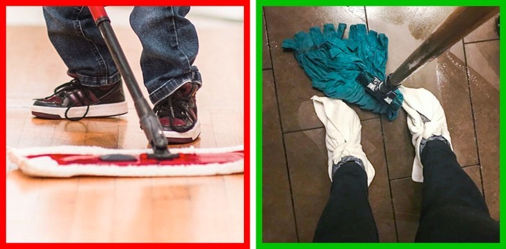 6. Quando esfregar o chão, enrole os sapatos com um pano; Dessa forma, você ajuda a mantê-los secos e não terá que se preocupar em limpar-se